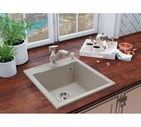 Мойка из искусственного камня универсальна, так как идеально вписывается в дизайн любого кухонного гарнитура, а в эксплуатации этому изделию нет равных - литые композиты выдерживают температурные колебания, имеют высокую прочность, бесшумность, нулевое водопоглощение, стойкость к пищевым и химическим красителям и для ухода за мойкой можно использовать любые неабразивные моющие средства.