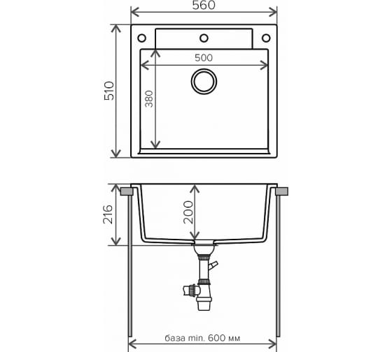 Кухонная мойка Polygran ARGO-560 (№16 Черный) 575806 представлена в современном стиле, отлично впишется в любой интерьер кухни.