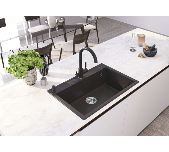 Мойка из искусственного камня универсальна, так как идеально вписывается в дизайн любого кухонного гарнитура, а в эксплуатации этому изделию нет равных - литые композиты выдерживают температурные колебания, имеют высокую прочность, бесшумность, нулевое водопоглощение, стойкость к пищевым и химическим красителям и для ухода за мойкой можно использовать любые неабразивные моющие средства.
