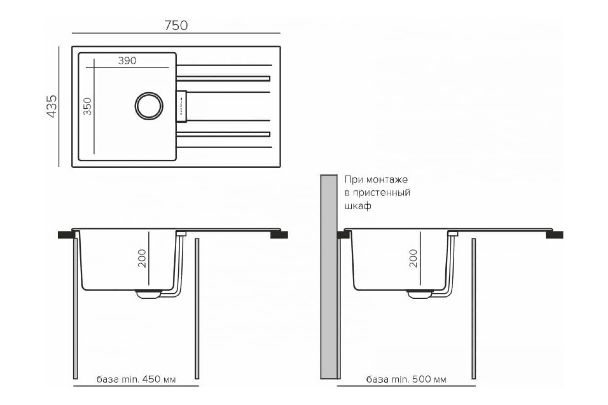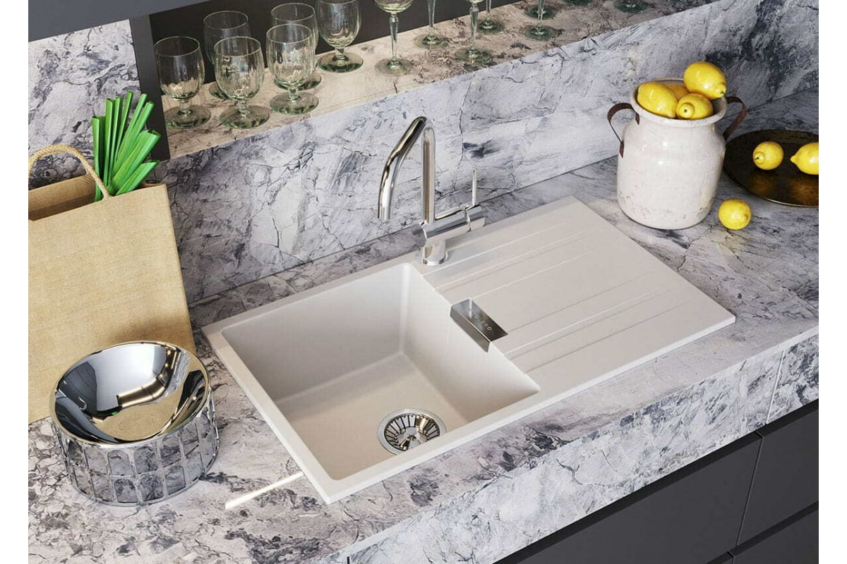 Кухонная мойка Tolero Loft TL-750 (№923 Белый) 473714 производится из синтезированного материала на основе естественно раздробленного кварцевого минерала.