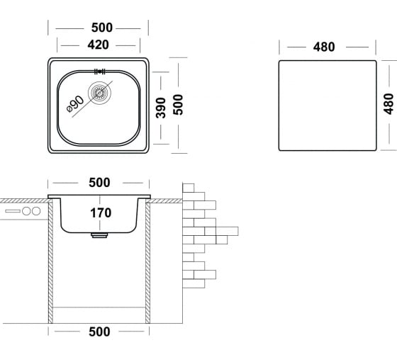 ВНИМАНИЕ! Мойка поставляется без сливной арматуры и отверстия под смеситель.