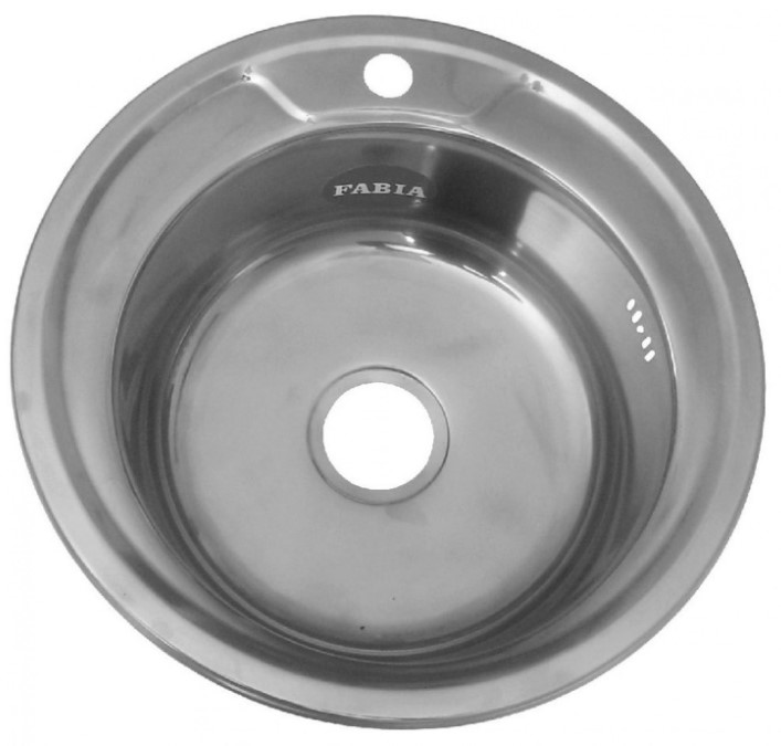 FABIA - Мойка врезная круглая ЭКОНОМ 49 см из нержавеющей стали толщина 0,6 мм глубина 160 мм + большой сифон с переливом, код: 04906