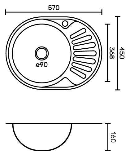Габаритные размеры: ширина 570 мм, длина 450 мм, глубина 160 мм, толщина стали 0,6 мм.