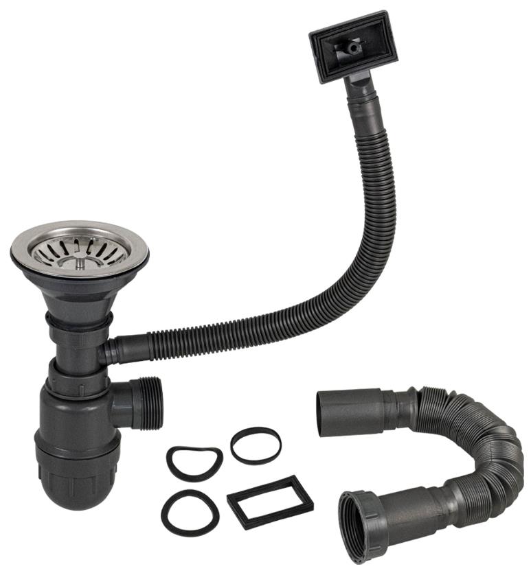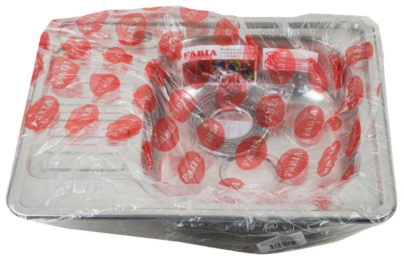Мойка врезная FABIA 58486R, правая 580х480 мм, толщина 0,6 мм глубина 160мм + большой сифон с переливом