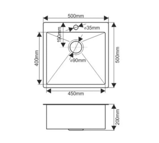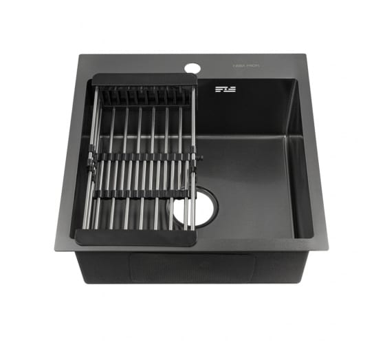 Врезная мойка из нержавеющей стали FABIA Profi 50х50 графит, толщина 3 мм, с сифоном и коландером 50503G дополнительные характеристики: