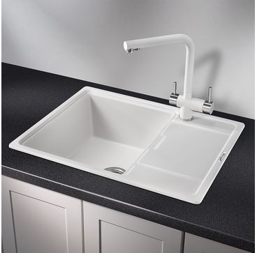 Кухонная мойка Weissgauff с чашей прямоугольной формы и особым эргономичным крылом, выполненная из высококачественного искусственного камня и предназначенная для накладной установки в кухонный шкаф шириной 45 см - это по-настоящему вместительная чаша при лаконичном дизайне!