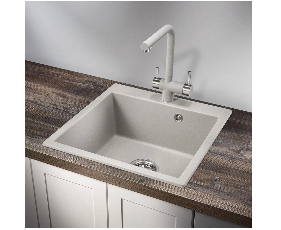Кухонная мойка Weissgauff с чашей прямоугольной формы, выполненная из высококачественного искусственного камня и предназначенная для накладной установки в кухонный шкаф шириной 50 см - это по-настоящему вместительная чаша при лаконичном дизайне!