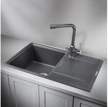 Кухонная мойка Weissgauff с чашей прямоугольной формы и особым эргономичным крылом, выполненная из высококачественного искусственного камня и предназначенная для накладной установки в кухонный шкаф шириной 50 см - это по-настоящему вместительная чаша при лаконичном дизайне!