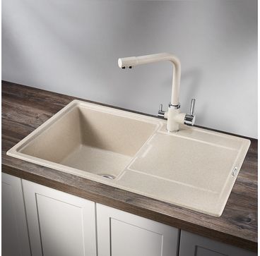 Кухонная мойка Weissgauff с чашей прямоугольной формы и особым эргономичным крылом, выполненная из высококачественного искусственного камня и предназначенная для накладной установки в кухонный шкаф шириной 50 см - это по-настоящему вместительная чаша при лаконичном дизайне!
