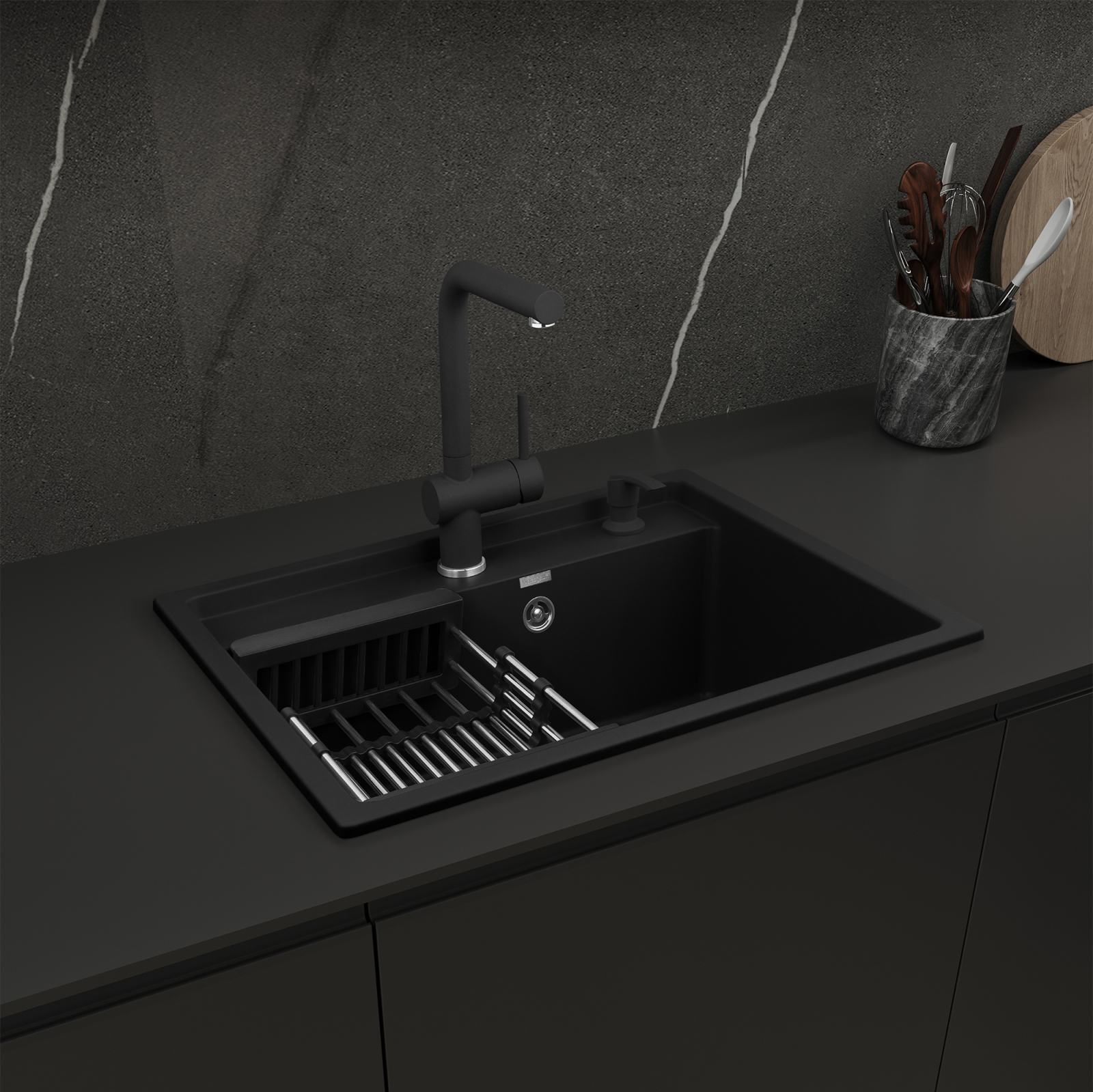 Комплектация: Мойка, сифон серии "Элит", гофротруба, коландер, дозатор, технический паспорт и гарантийный талон