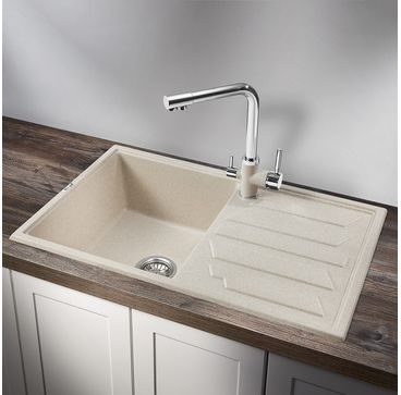 Кухонная мойка Weissgauff с чашей прямоугольной формы и особым эргономичным крылом, выполненная из высококачественного искусственного камня и предназначенная для накладной установки в кухонный шкаф шириной 60 см - это по-настоящему вместительная чаша при лаконичном дизайне!