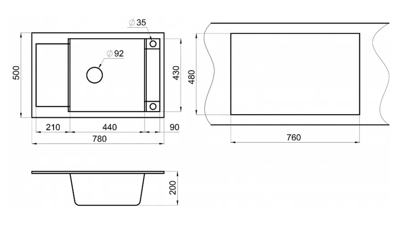 - Прямоугольная форма чаши - позволит добиться максимальной вместительности мойки в сочетании с лаконичностью прямолинейных форм! Почувствуйте удобство и комфорт, имея возможность помыть даже самую крупногабаритную посуду, не ощущая при этом ни малейшей скованности в движениях!
