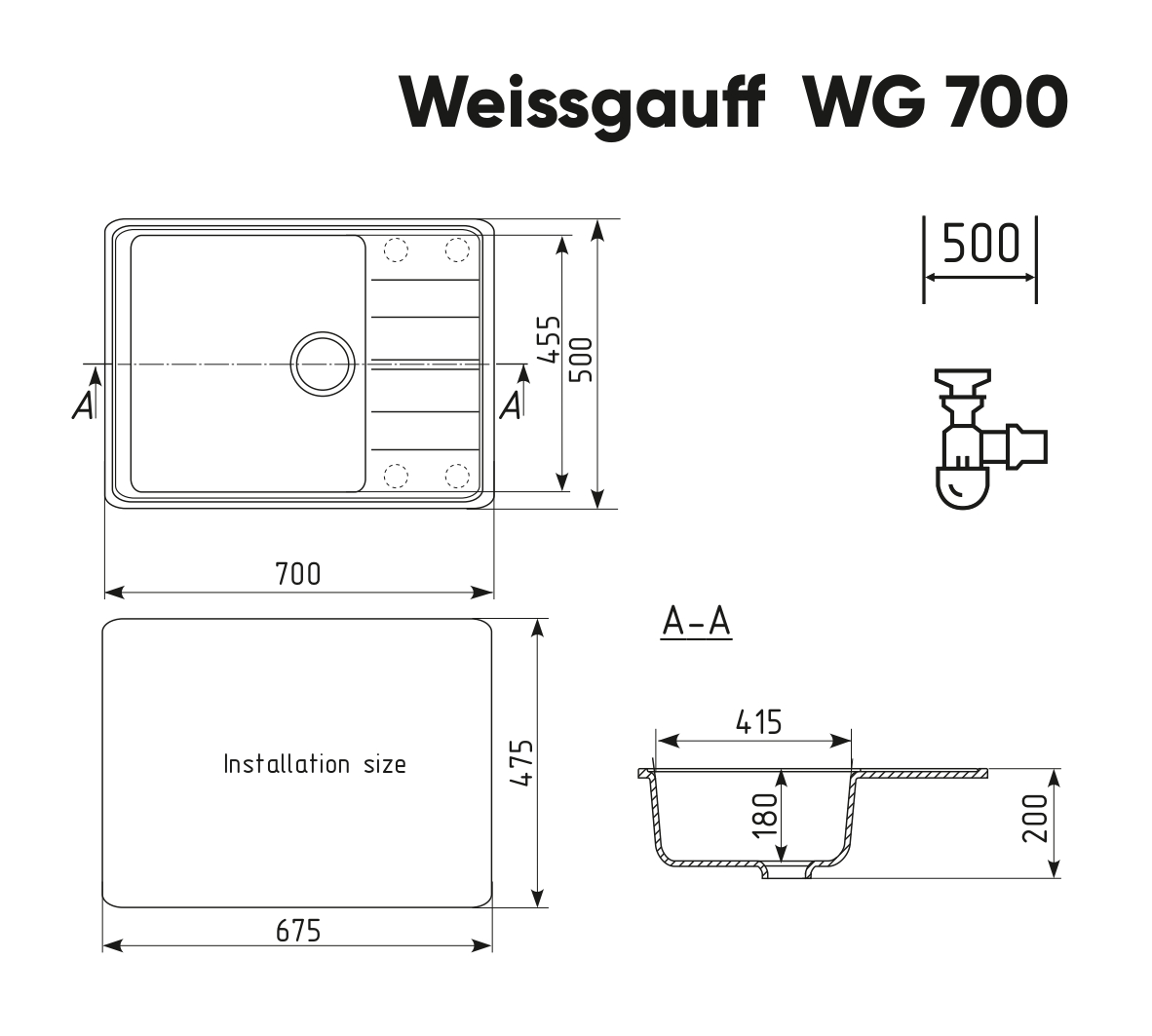 Габариты мойки, мм: 700 х 500 х 200