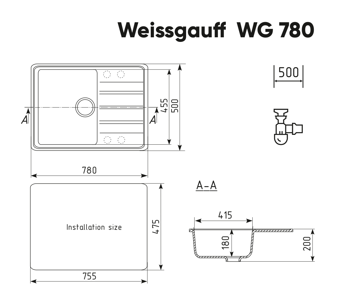 Габариты мойки, мм: 780 х 500 х 200