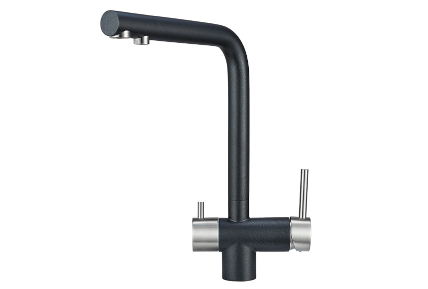 Смеситель для кухонной мойки Granula 2305 изготовлен из высококачественного материала. Корпус из нержавеющей стали обеспечивает длительный срок службы. При этом высокий излив позволяет мыть как мелкую, так и крупногабаритную посуду. Двухрычажная модель смесителя Granula 2305 выполнена с краном для питьевой воды. Фильтрованная вода подается по отдельной трубке и не смешивается с водопроводной водой.