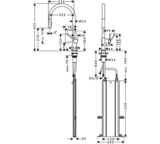 Технические характеристики Hansgrohe M54 talis 210 с вытяжным душем, 2jet.sbox 72801000