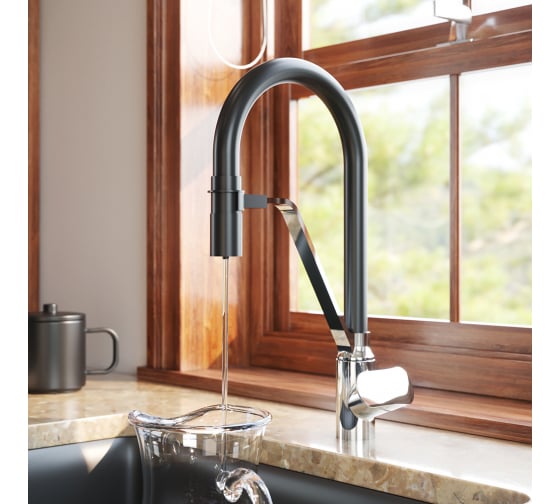 Гибкий излив значительно расширяет зону использования смесителя, гарантирует легкий уход за мойкой и наполнение емкостей любого размера. Устойчив к загрязнениям, перегибам и внешним воздействиям. Удобный магнитный притягиватель для фиксации излива.