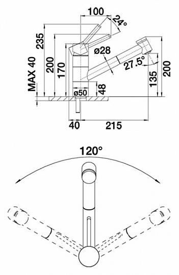 Высота излива, см 13.5