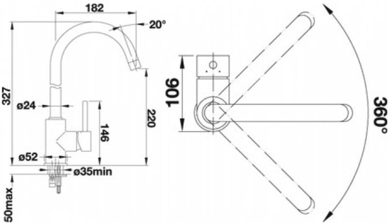 Высота излива (мм): 220