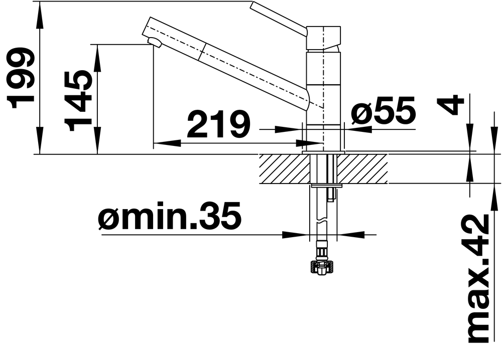 Требуется отверстие под смеситель Ø 35 мм
