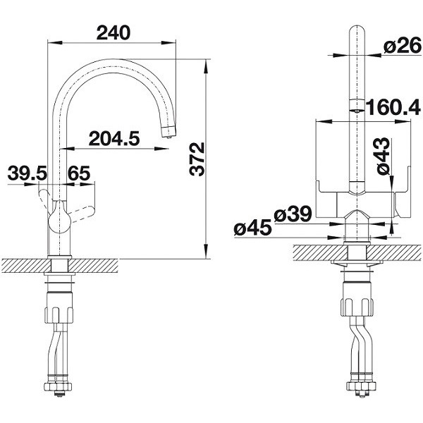 Гибкие шланги длиной 450 мм с гайкой 3/8, крепеж