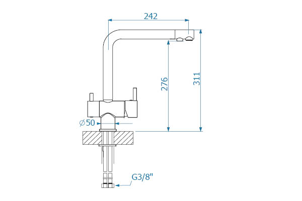 С помощью правого рычага контролируется подача холодной и горячей воды для повседневного домашнего использования, а с помощью левого рычага осуществляется подача свежефильтрованной чистой питьевой воды.