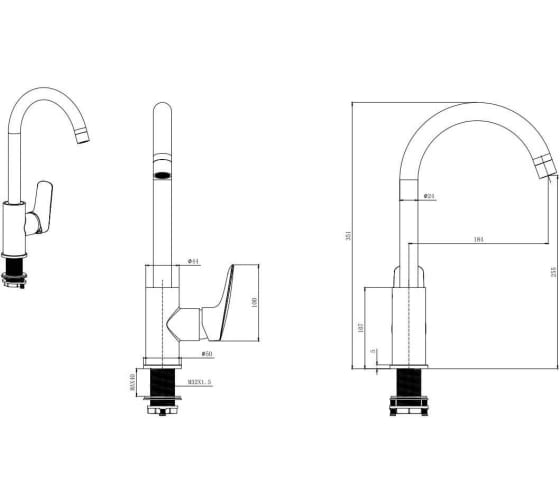 Оснащен высоким изливом, удобен для мытья крупных предметов