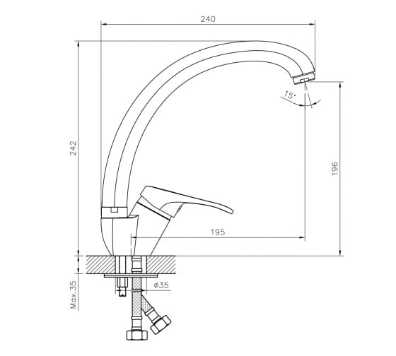 Смеситель для кухни DECOROOM (DR21021) одноручный с повор. изливом, хром