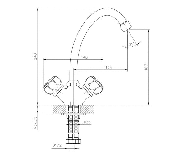 Смеситель для кухни DECOROOM (DR50028R) двуручный с поворотный изливом, хром