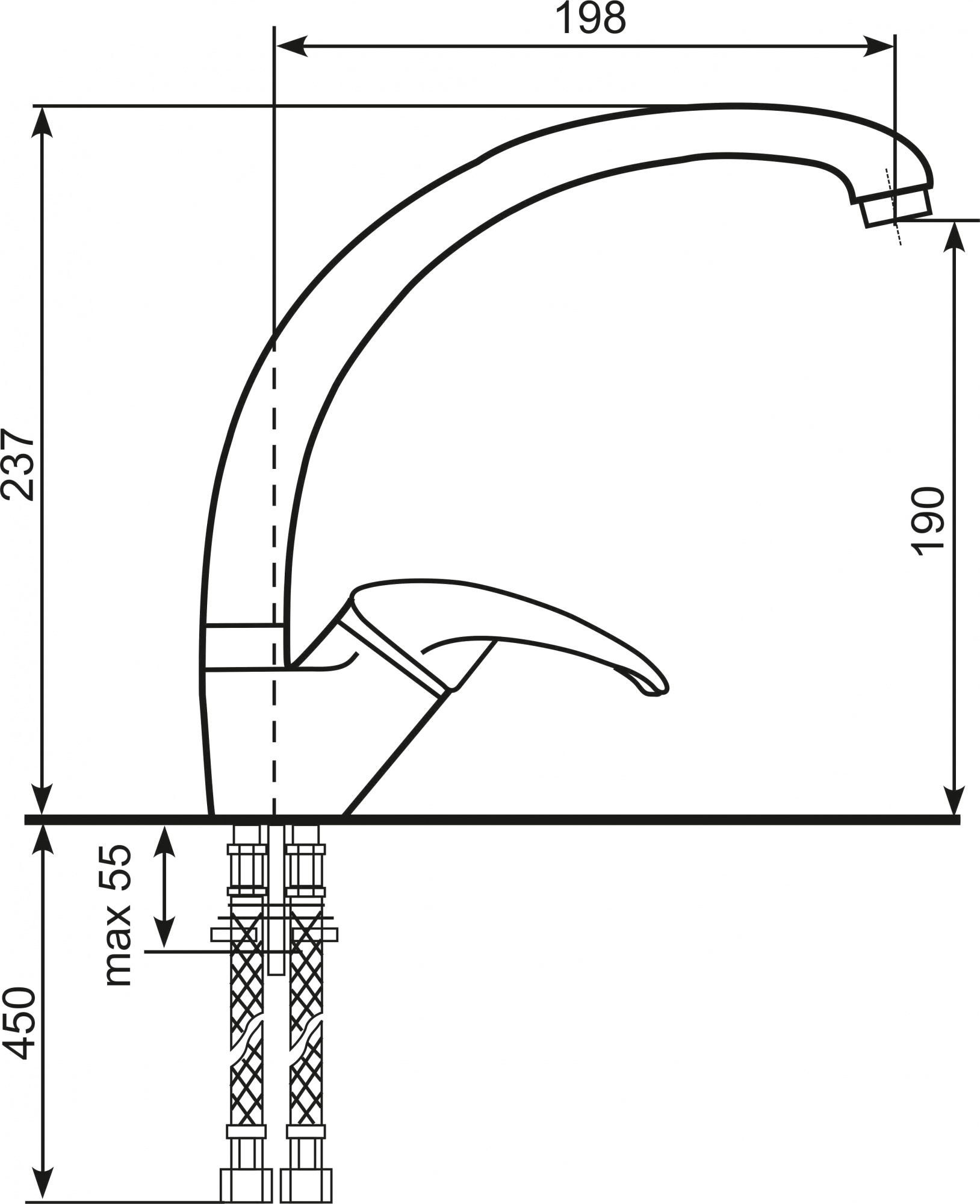 Высота излива,см 19