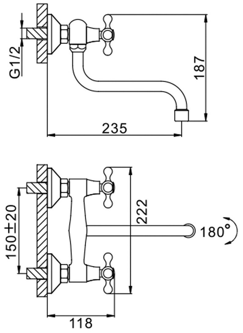 Смеситель для кухни Frap F4608 510510 настенный 1/2 кер крест нижний