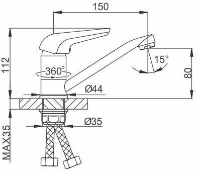 Смеситель для кухни Frud R45102 хром, излив средний, силумин 40мм 1/10
