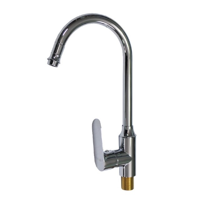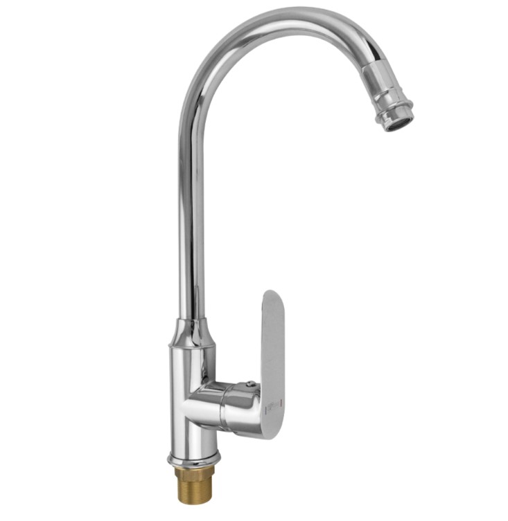 Смеситель для кухонной мойки и раковин, хромированный, боковой, с высоким С-образным изливом, шаровый.