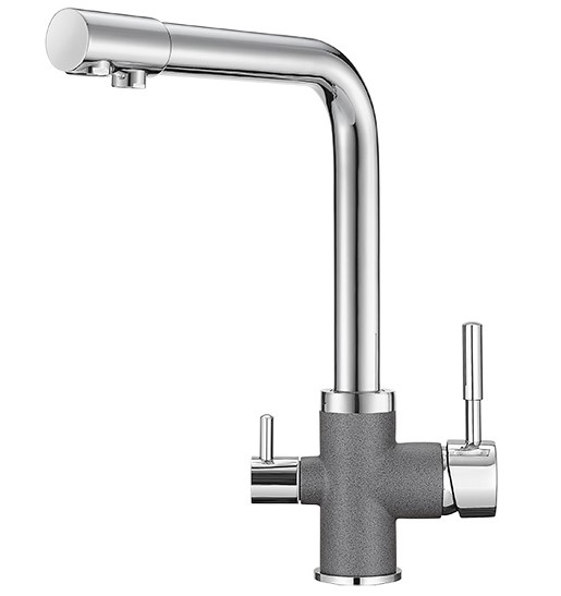 Смеситель — модель с краном для питьевой воды. Имеет удобные, эргономичные ручки и оптимальные для большинства кухонь размеры. Дополнительным плюсом является хромированный излив, сочетается с другими хромированными деталями на кухне.
