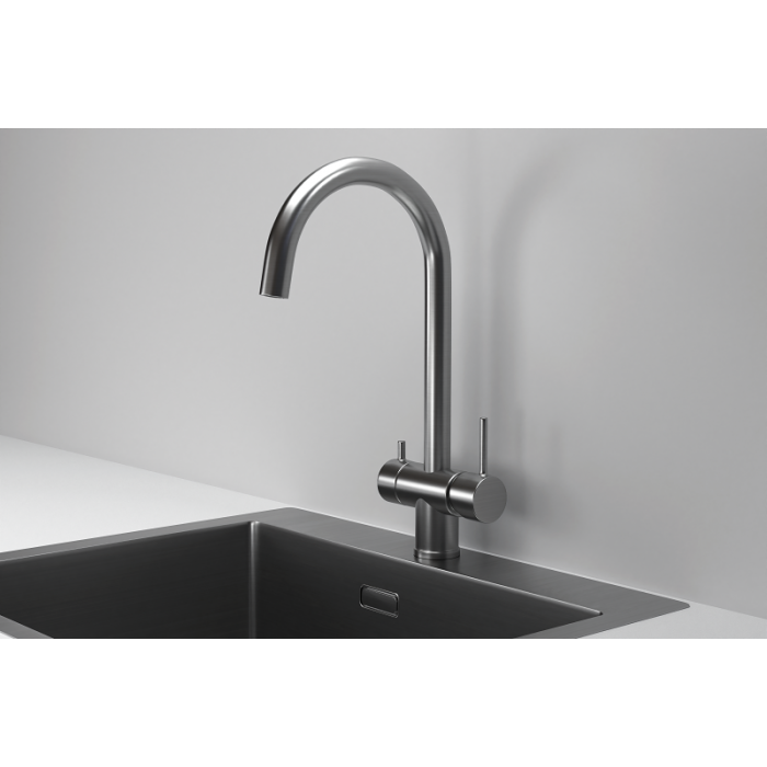 Смеситель имеет двухканальный корпус, что позволяет использовать его как для обычной, так и для фильтрованной воды. Дополнительный изолированный канал для фильтрованной воды обеспечивает ее чистоту и отсутствие примесей в основном потоке.