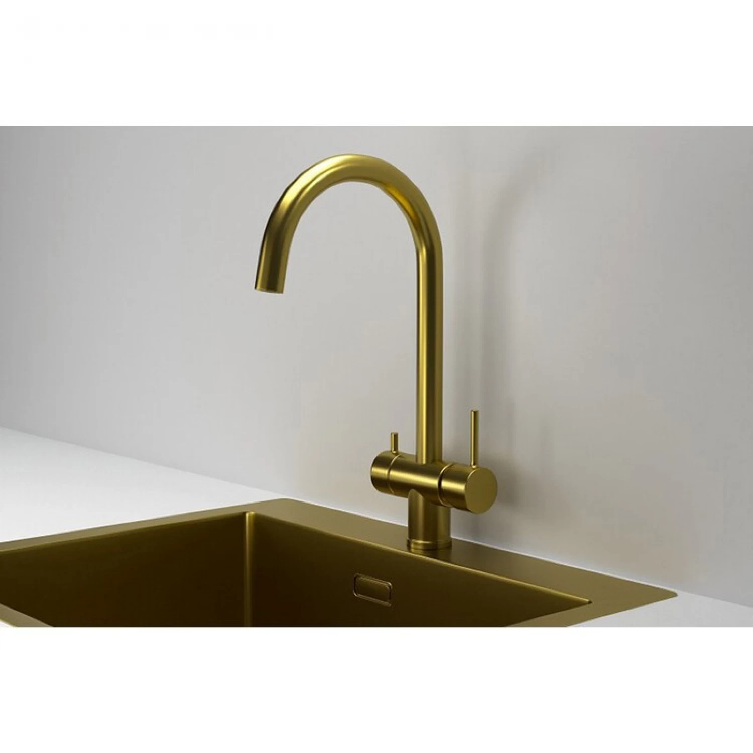 - Смеситель имеет двухканальный корпус, что позволяет использовать его как для обычной, так и для фильтрованной воды. Дополнительный изолированный канал для фильтрованной воды обеспечивает ее чистоту и отсутствие примесей в основном потоке.