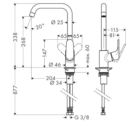 Технические характеристики Hansgrohe Focus Е2 под сталь