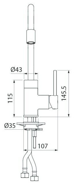 Подводка изготовлена из нетоксичной EPDM резины в оплетке из нержавеющей стали, длина 400 мм