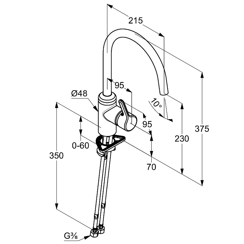 Длина излива 21.5 см