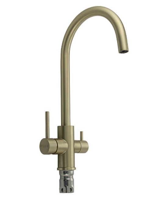 Смеситель для кухонной мойки и раковин с двойным выпуском воды для фильтра, литой корпус, цвет под золото, из нержавеющей стали марка 304, с высоким С-образным изливом, шаровый,