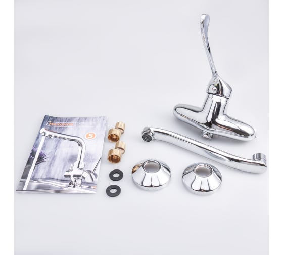 Настенный хирургический смеситель для кухни Maxonor хром MN4654 предназначен для крепления на изделие или прилегающую поверхность столешницы.