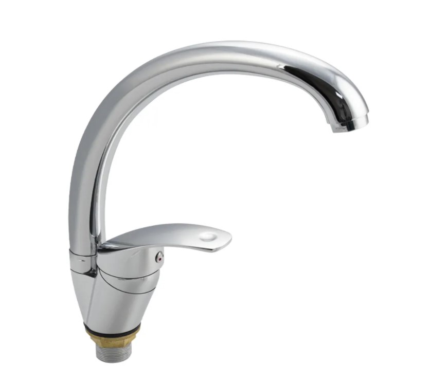 Смеситель для кухонной мойки и раковин, хромированный, боковой, с высоким С-образным изливом, шаровый,