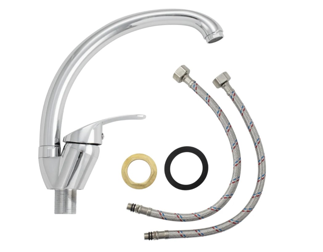 В комплекте паспорт, корпус с изливом, подводка 1/2, крепеж, набор прокладок