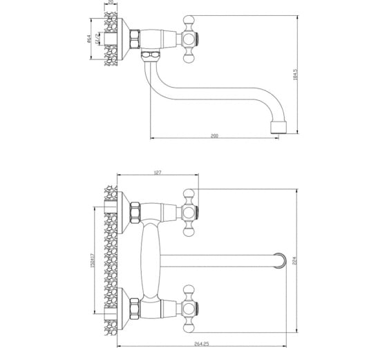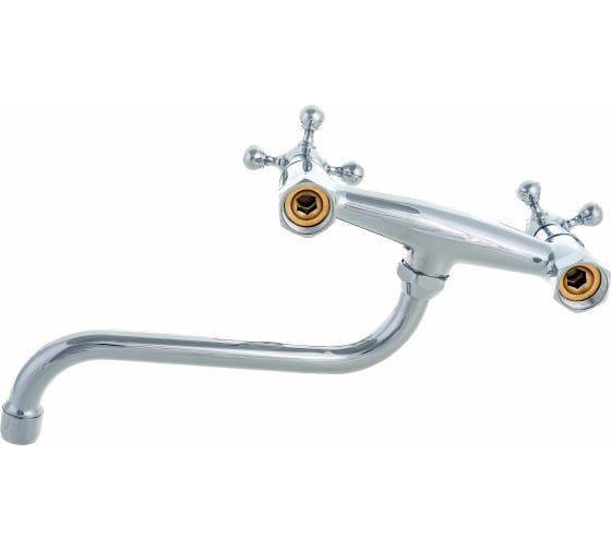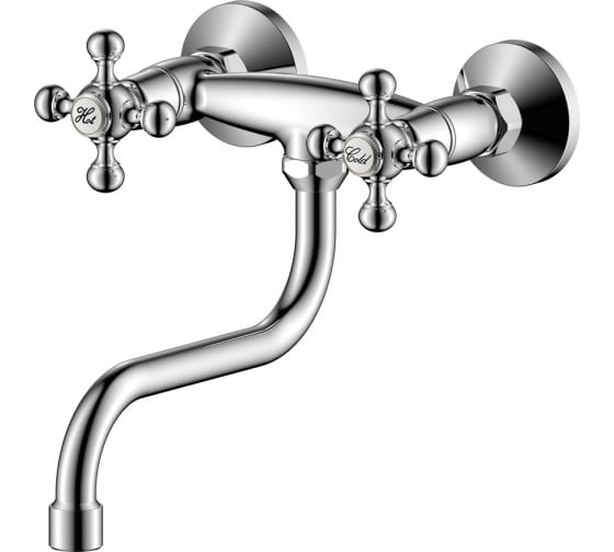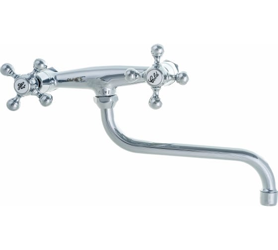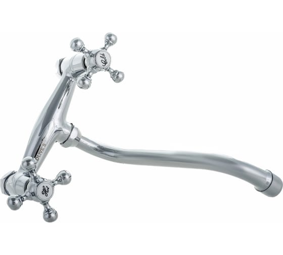 Настенный смеситель для кухни OLIVE'S 01410GR с удобными маховиками и поворотным изливом 20 см.