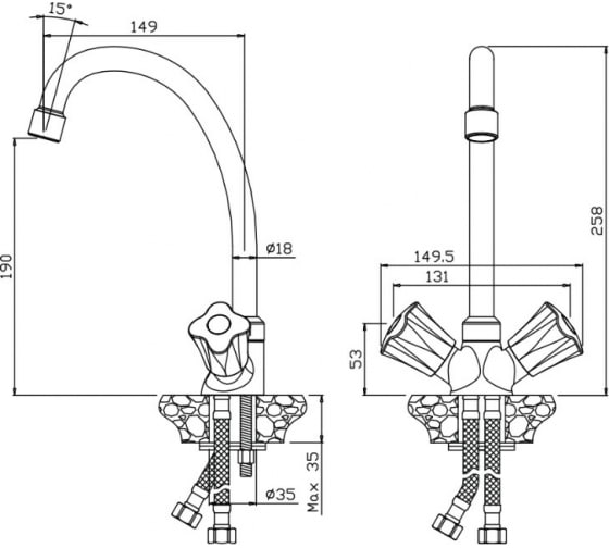 Смеситель комплектуется усиленным крепежом из нержавеющей стали с ребром жесткости.