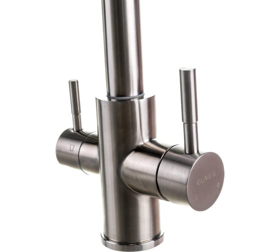 Смеситель для кухни OLIVE'S Balear под фильтр, нержавеющая сталь 13450BL оснащен удобным высоким двойным изливом для водопроводной и питьевой воды.