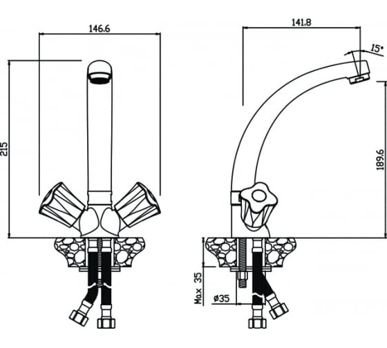 Смеситель для кухни OLIVE'S VIGO 21431VG устанавливается на раковину. Сантехнический прибор предназначен для подачи и регулировки с помощью кран-буксов горячей и холодной воды. Латунный корпус из высококачественного сплава HQ Brass покрыт двумя слоями никель-хрома. Смеситель поставляется с усиленным крепежом из нержавеющей стали.