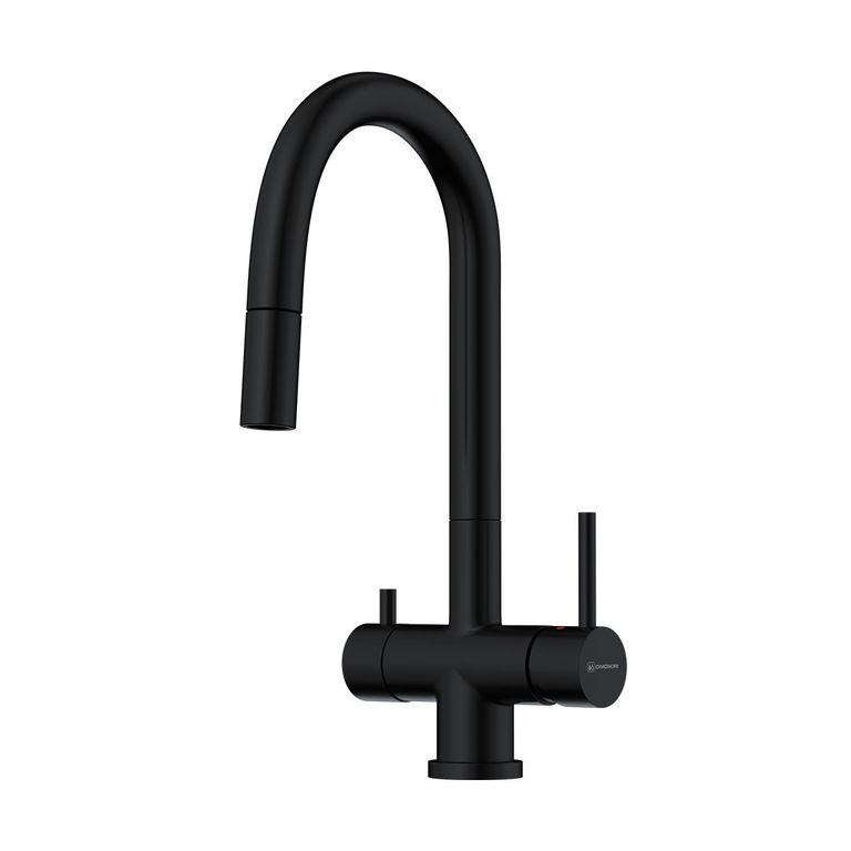 Смеситель для кухни категории 3 в 1: подключение фильтра для очистки воды, наличие вытяжного шланга и функция подачи горячей/холодной воды.