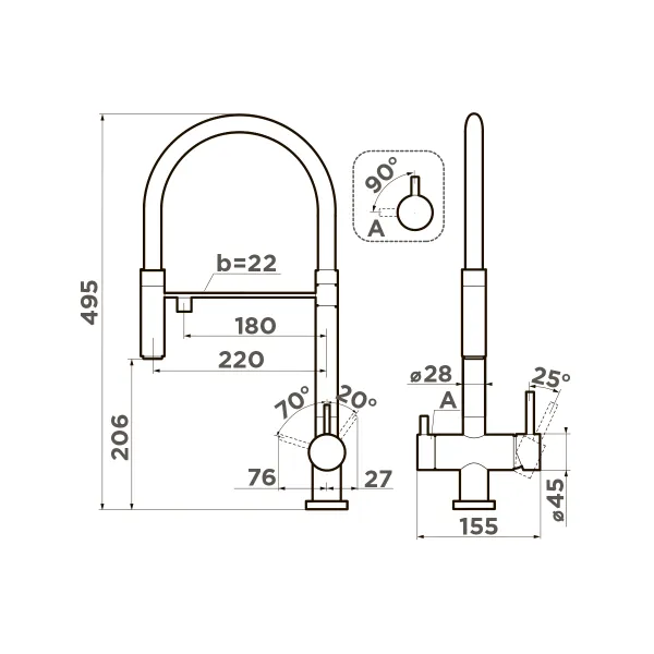 Высота смесителя 495 мм