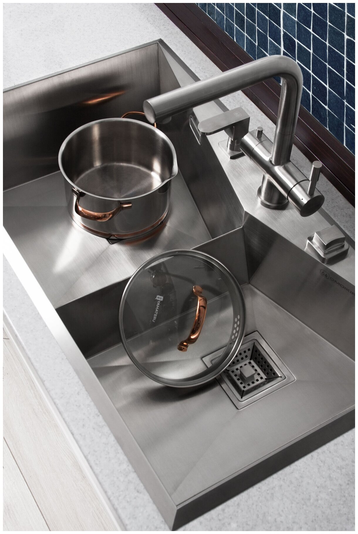 Современный дизайн и удобство использования, благодаря высокому изливу;